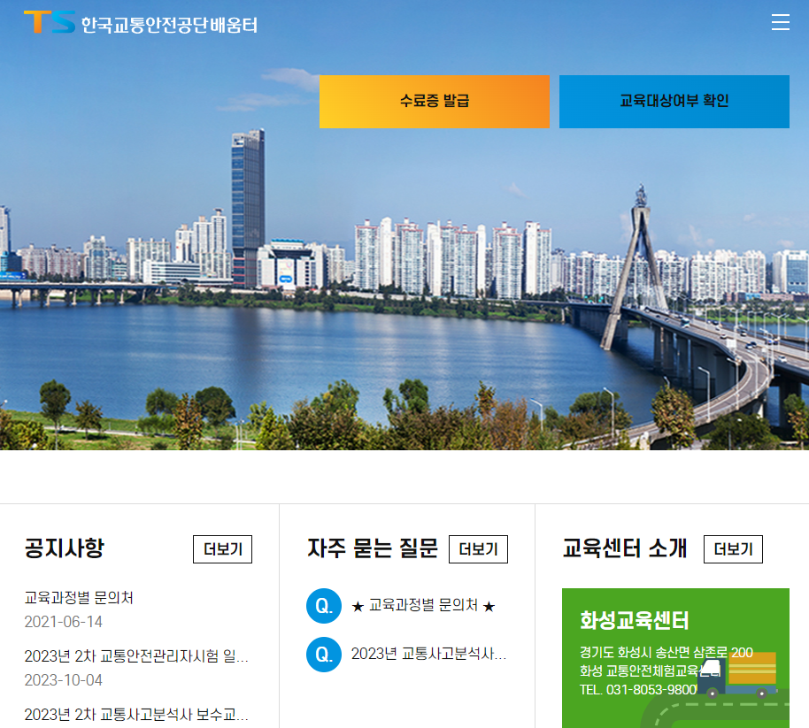 한국교통안전공단 배움터 홈페이지