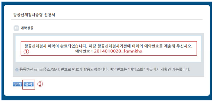 ① 항공신체검사 기관에 해당 번호를 제출하여 신체검사를 실시합니다.