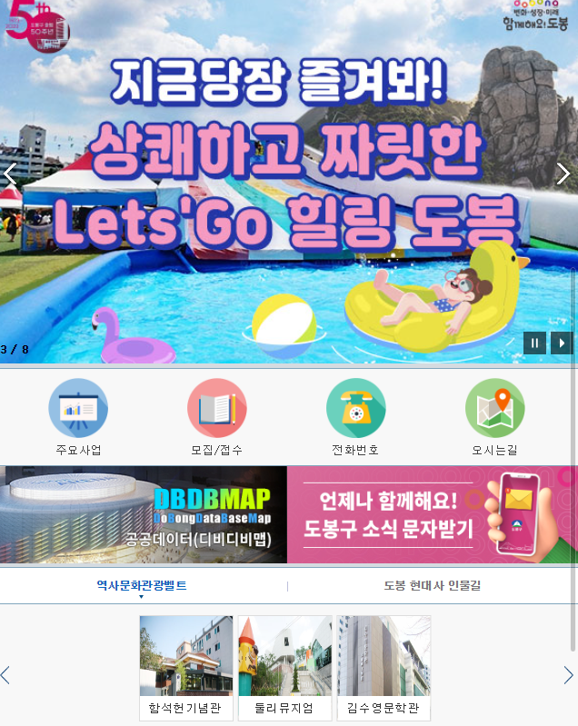 아래쪽에는 크게 4가지로 도봉구청에 필요한 것을 배치하였는데요.
