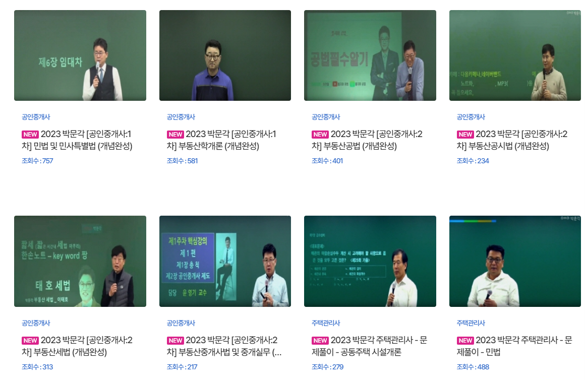 재미로 볼 것이 아니라 실제로 무언가를 준비해서 보기를 원한다면 공인중개사 강좌도 오픈되어있습니다.